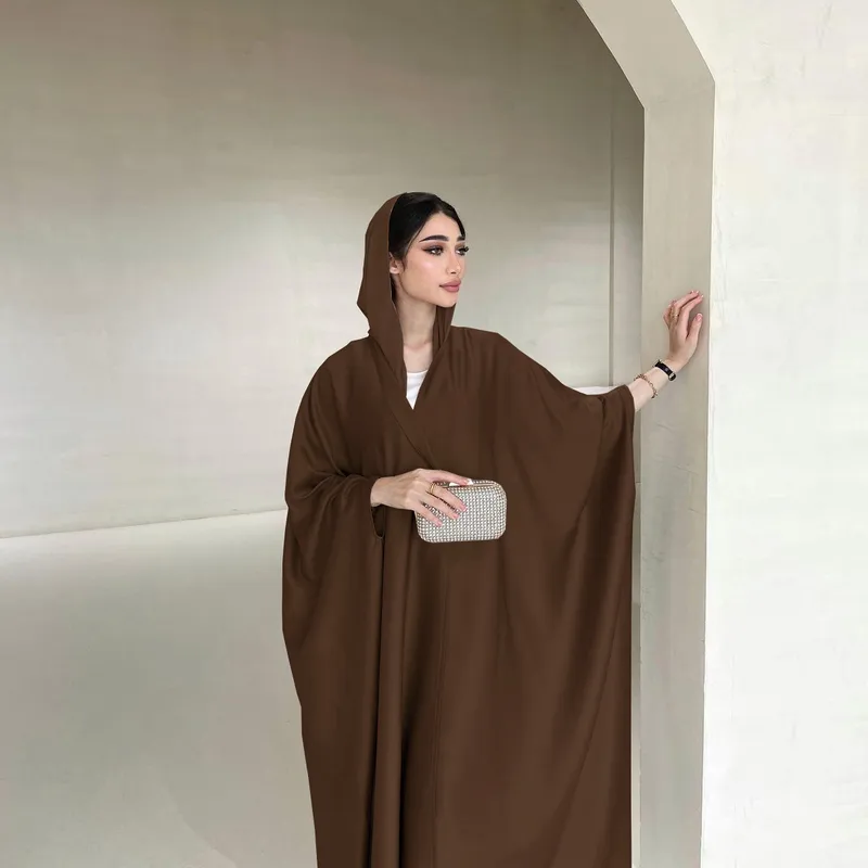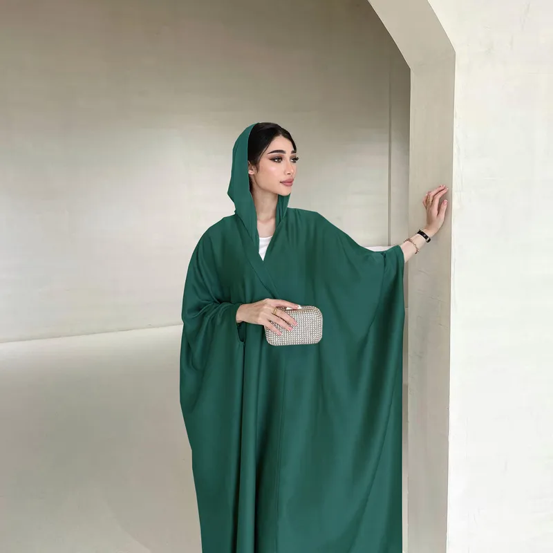 Wholesale MQ082 Elegant Muslim Abaya Modest Batwing Sleeve Robe with Luminous Satin