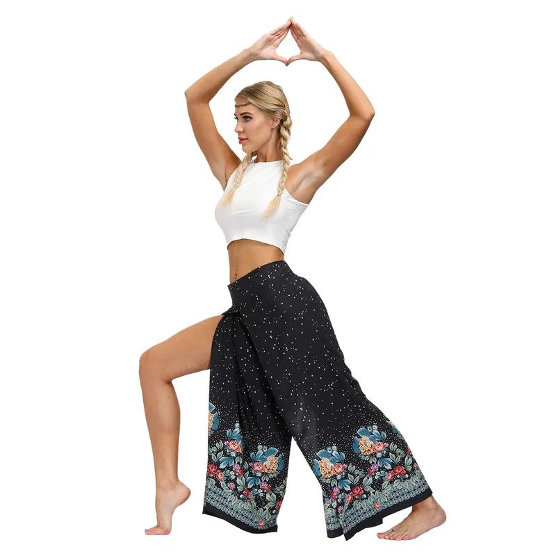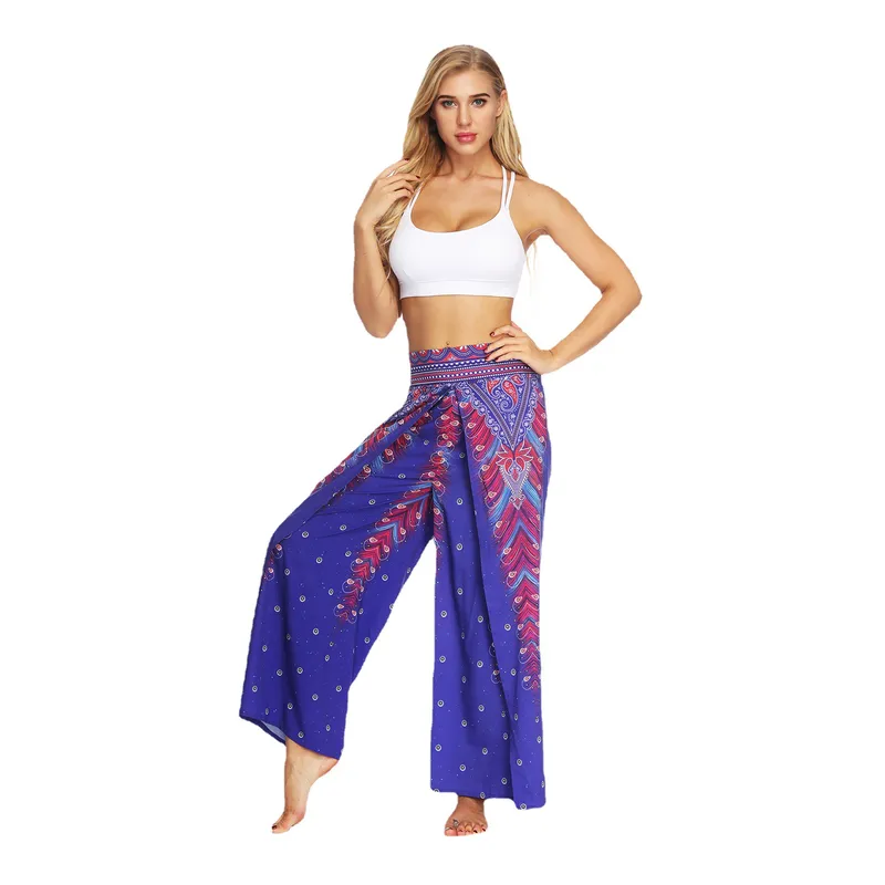 Wholesale Hot Peacock Feather Digital Printing Summer Comfortable Breathable Casual Pants Fashion Loose Straight Leg Pants for Women