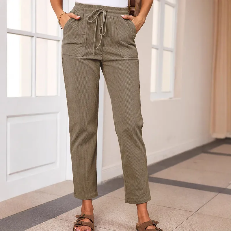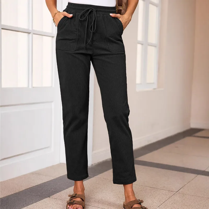 Wholesale Women's Daily Casual Stripe Full Length Elastic Drawstring Design Casual Pants