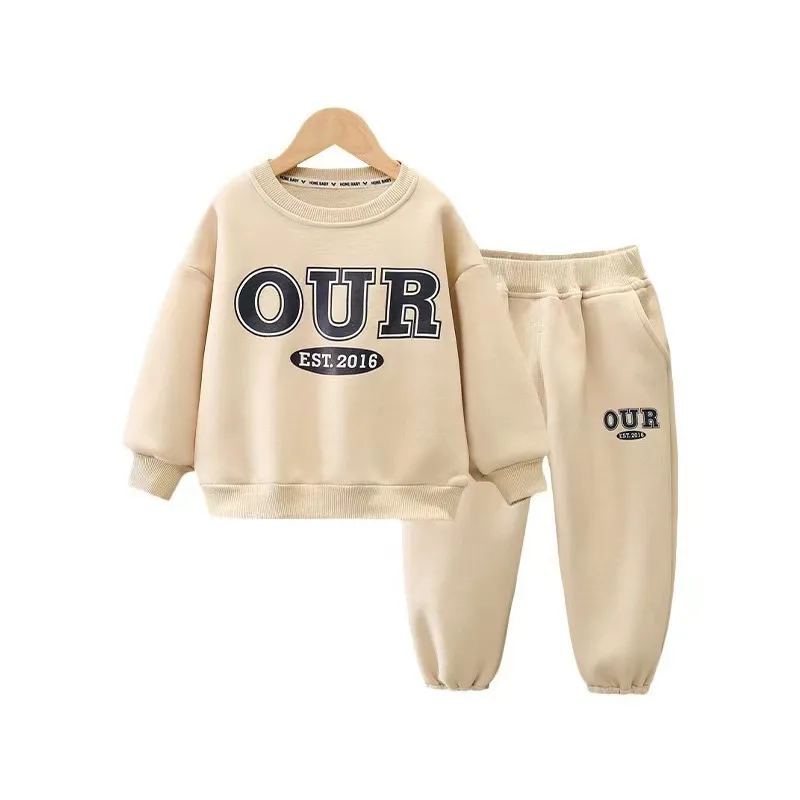 Wholesale Children's Round Neck Sweatshirt Suit New Style Casual Autumn and Winter New Kidsren's Suit Long-sleeved Letter Thick Sweatshirt Suit Trend
