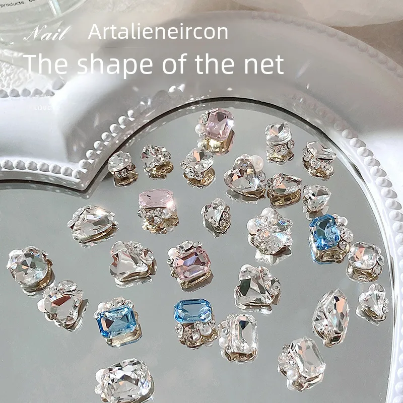 Online Celebrity Nail Crystal Pile Diamond Super Shiny Transparent Chinese Heart-crooked Axe Fat Square Three-dimensional Handmade Pearl Nail Drill