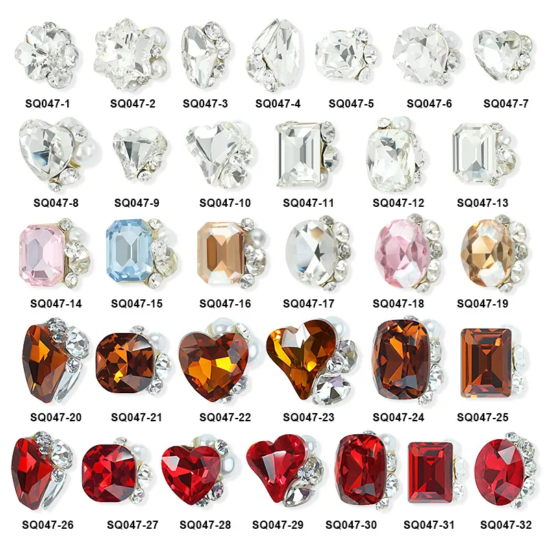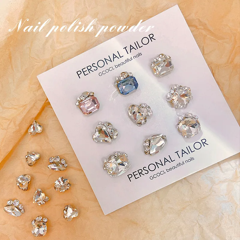 Wholesale Online celebrity nail Crystal pile Diamond super shiny transparent Chinese heart-crooked axe fat square three-dimensional handmade Pearl nail drill