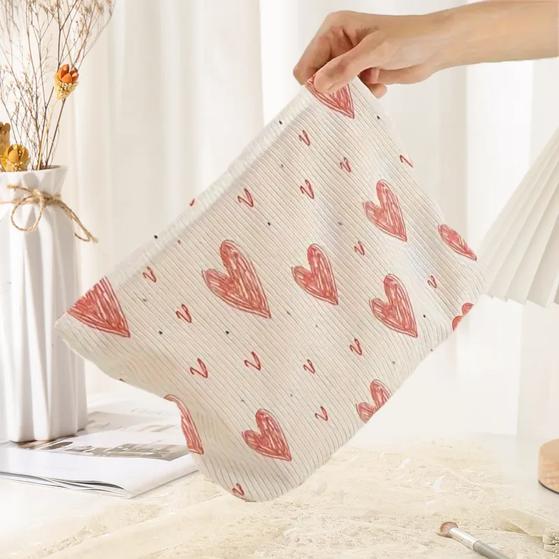 Wholesale Cute Heart Shape Corduroy Square Makeup Bags