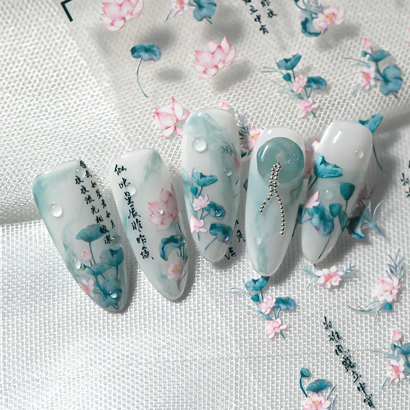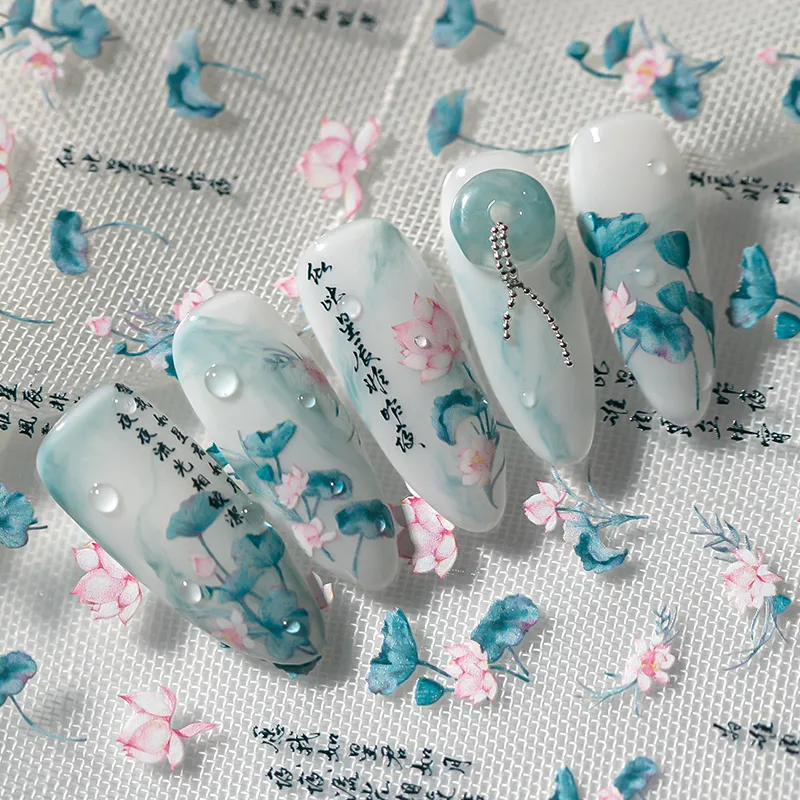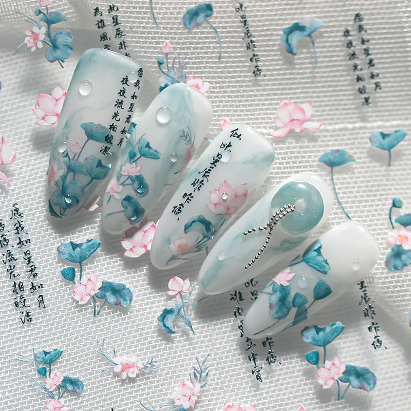 Wholesale IG Style Cartoon Style Cute Leaf Flower Lotus Nail Stickers Nail Decoration Accessories