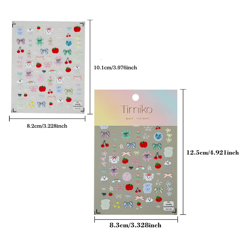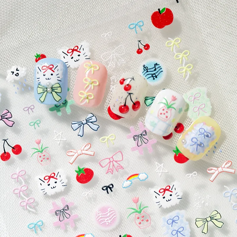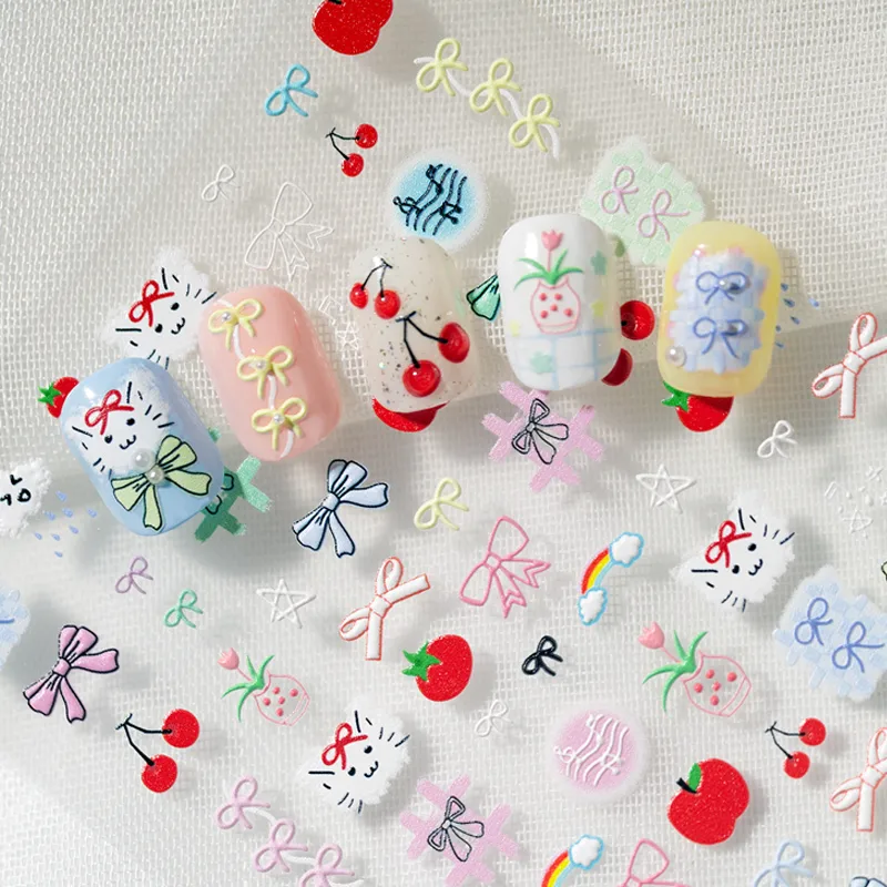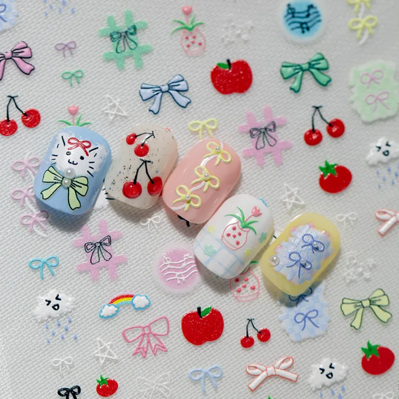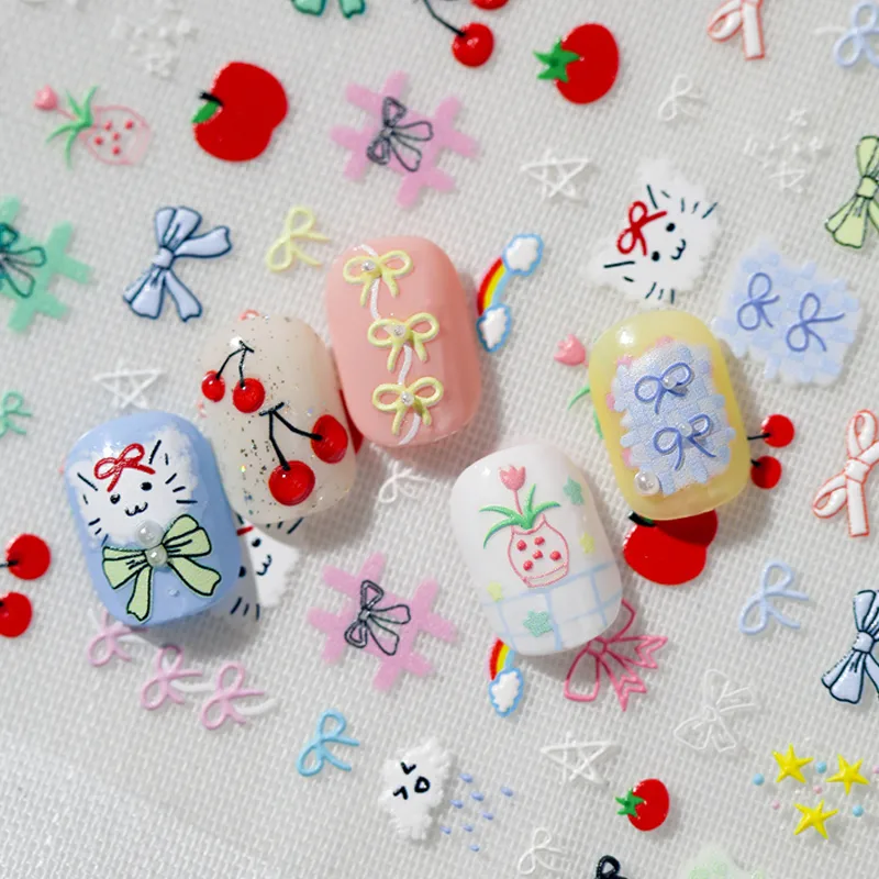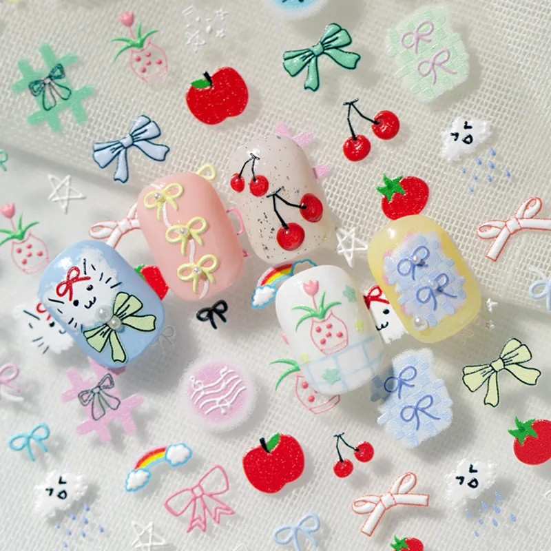 IG Style Cute Sweet Cherry Flower Bow Knot Nail Stickers Nail Patches