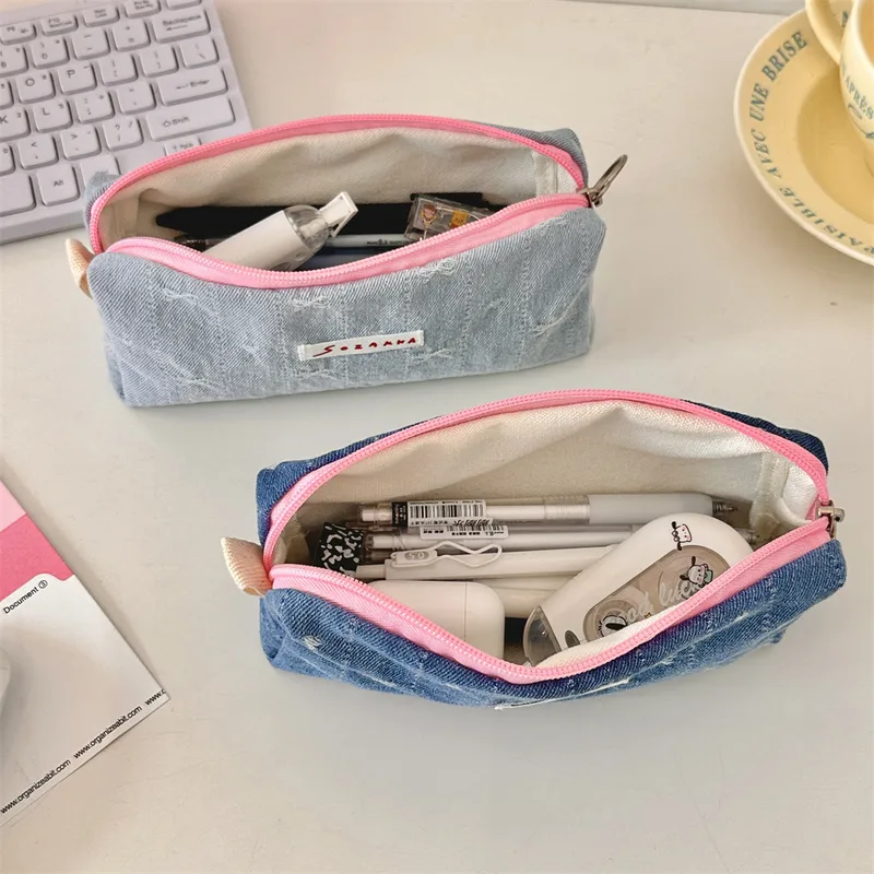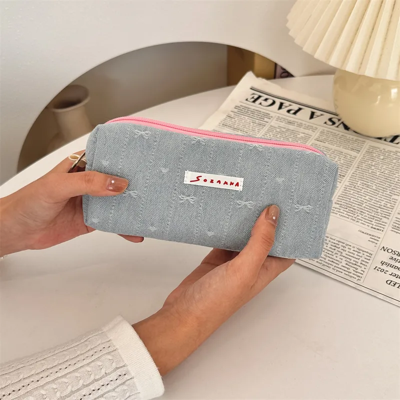 Wholesale Cute Bow Knot Denim Square Makeup Bags