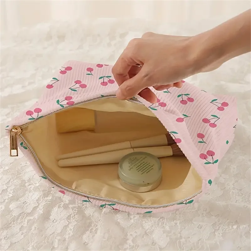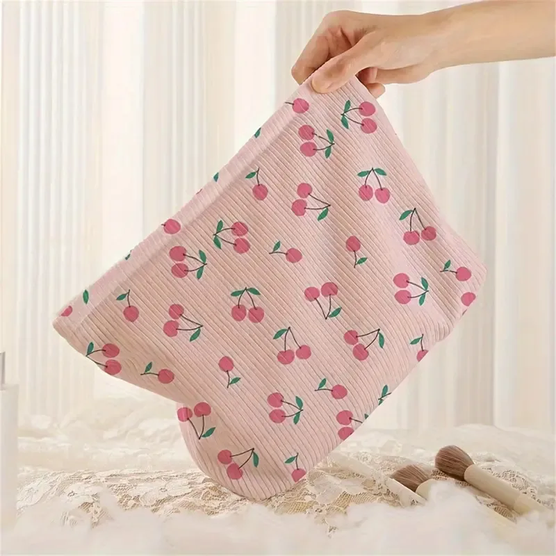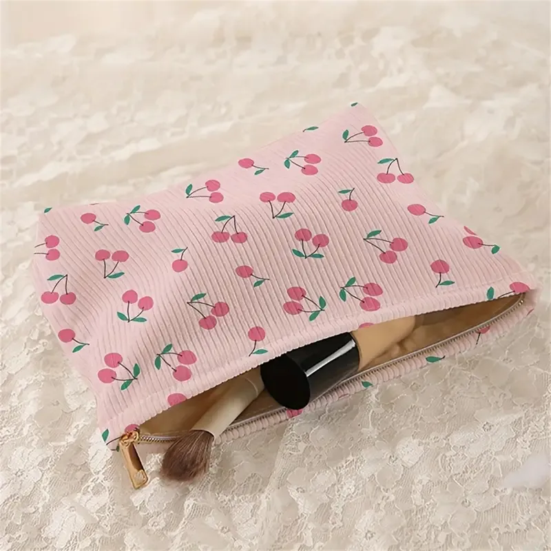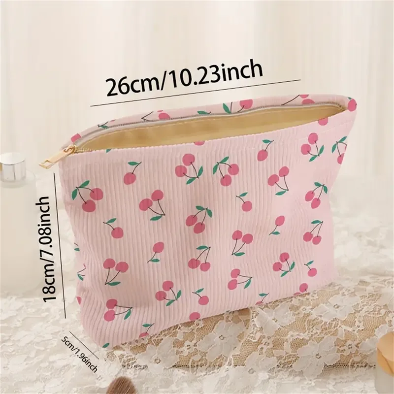 Elegant Streetwear Cherry Corduroy Square Makeup Bags