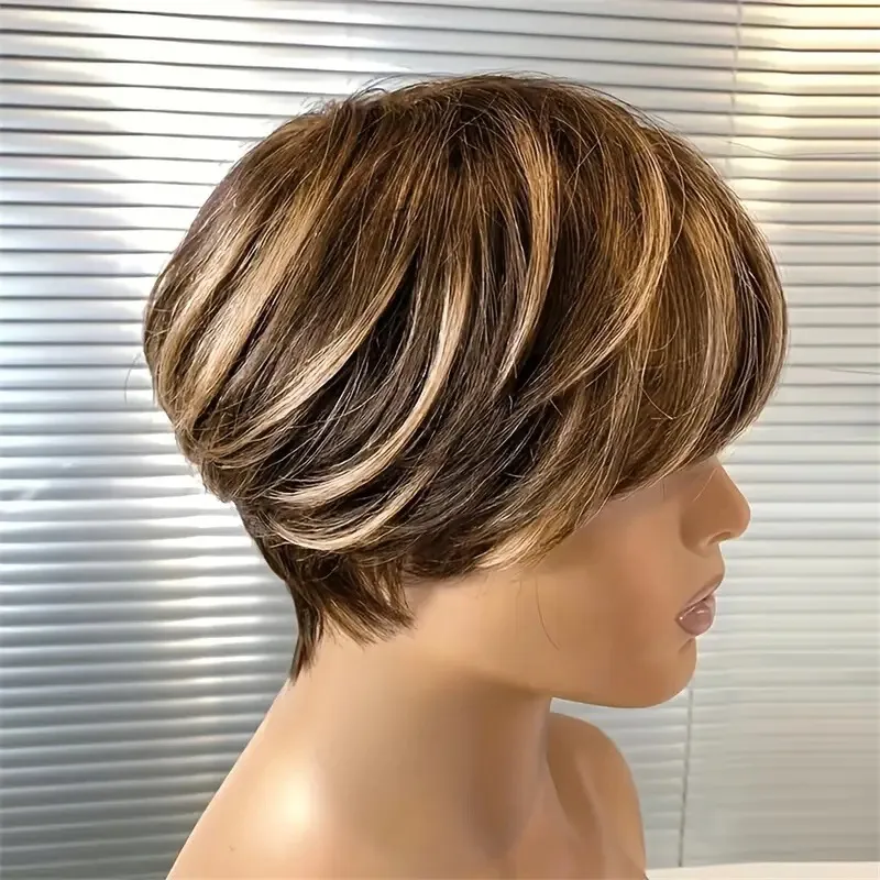 Wholesale Women's Simple Style Masquerade Carnival Street Real Hair Homogeneous and Oblique Short Straight Hair Wigs