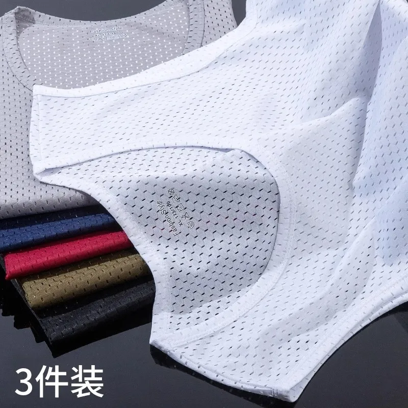 Summer Men's Vest Mesh Style For Sports Underwear Men's Sports Base Pure White Undershirt Men's Ice Silk Vest Wholesale