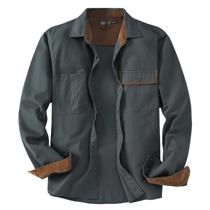 Wholesale Men's Workwear Corduroy Shirt 100% Cotton Relaxed Fit Casual Button - Up with Contrast Collar & Chest Pocket (Big & Tall Sizes)