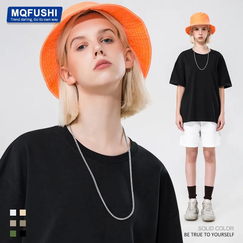 Mingqi Clothing 240g Heavy Solid Color T-shirt Custom Team Logo Fashion Brand Cotton Short Sleeve Base Shirt T-shirt