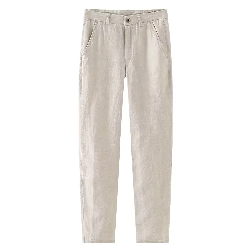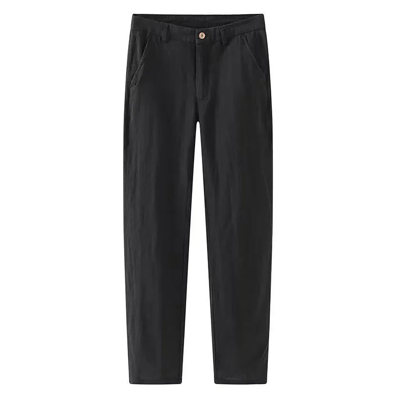 Men's Linen Casual Pants Summer Thin Retro Slim Fit Straight Leg Trousers High - Quality Cotton - Linen Blend