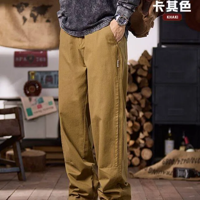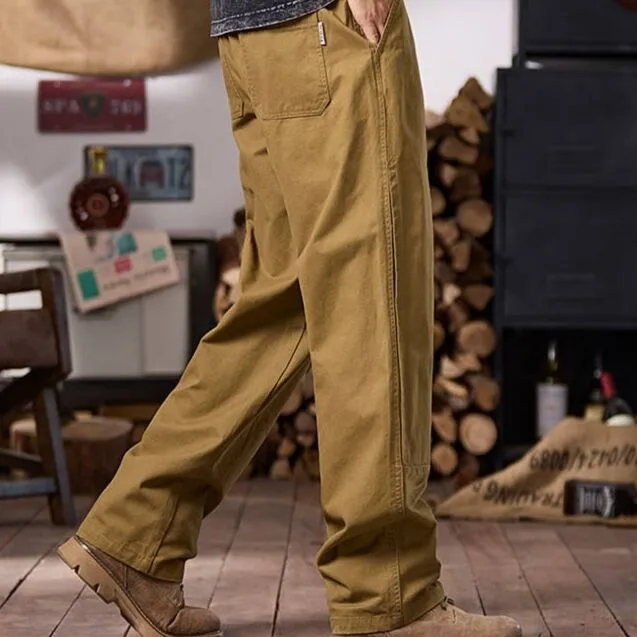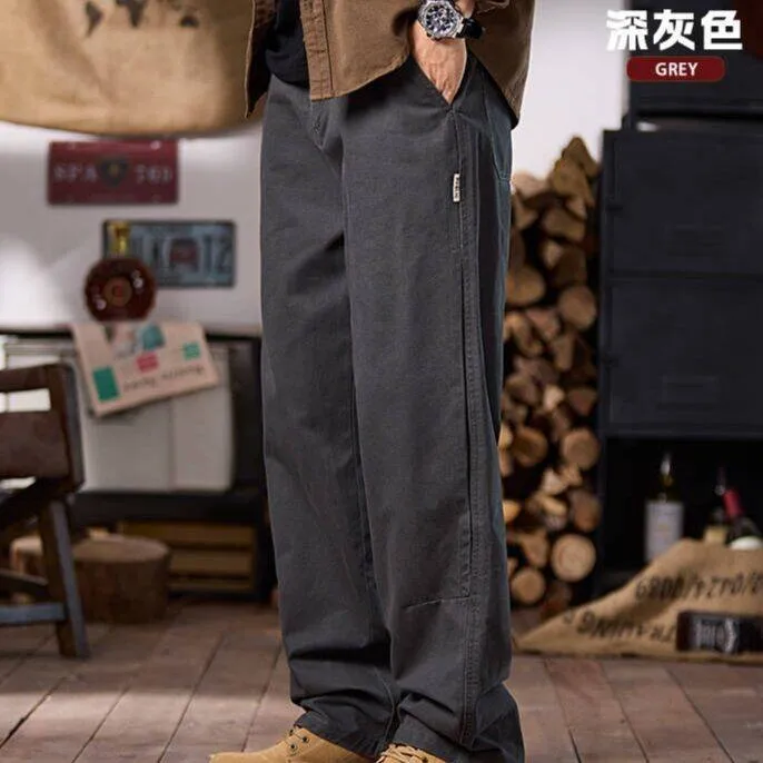 Men's Cotton Casual Pants - Loose Fit Straight Leg, Wide Trousers With Draped Hem For Sports Autumn Winter Fashion