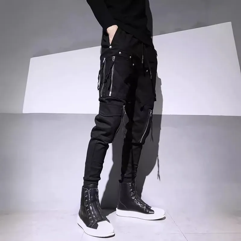 Wholesale Thirteen lines of original men's clothing dark trend zipper decorative slim-fit small feet harem pants New functional work pants