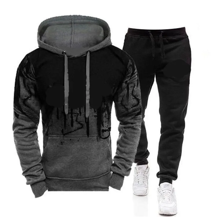 Wholesale Men's Splatter Print Hooded Fleece Sweatshirt Set