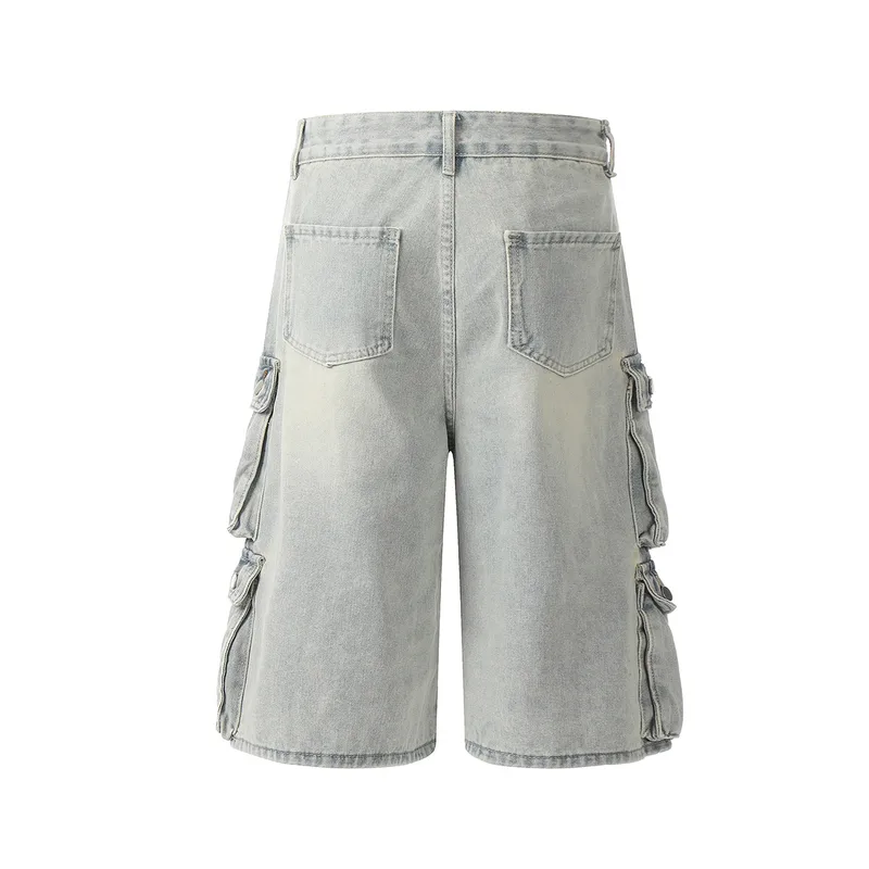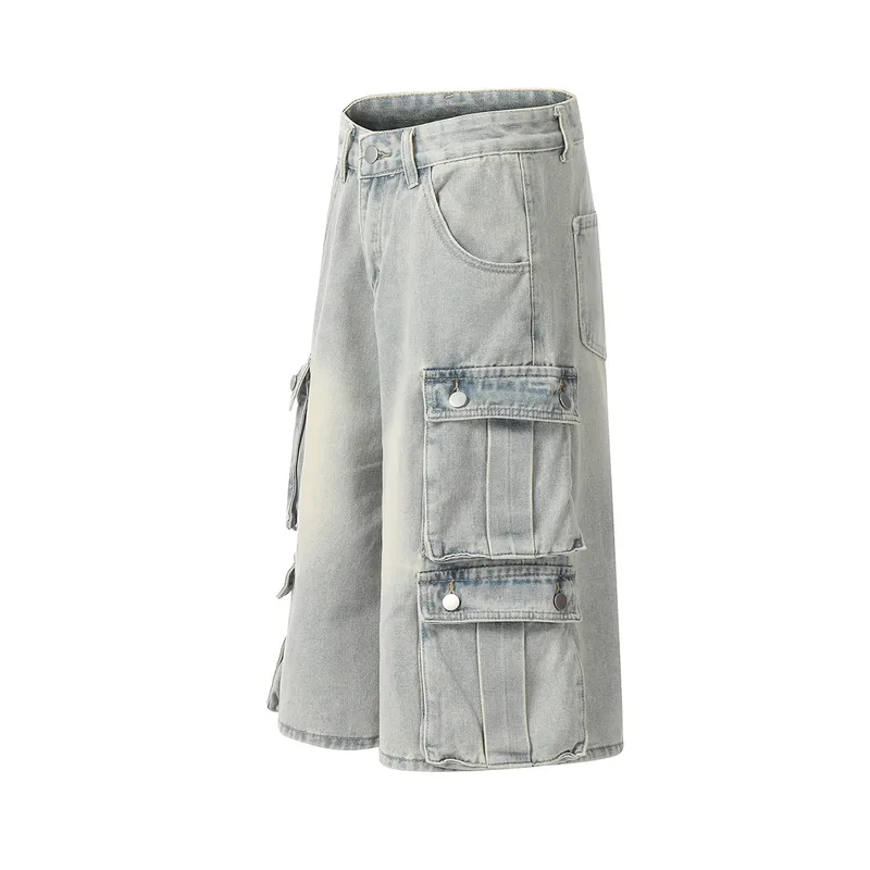 Jiayiku Men's Summer Cropped Pants American Retro Washed Work Jeans Straight Vibe Wide-Leg Shorts