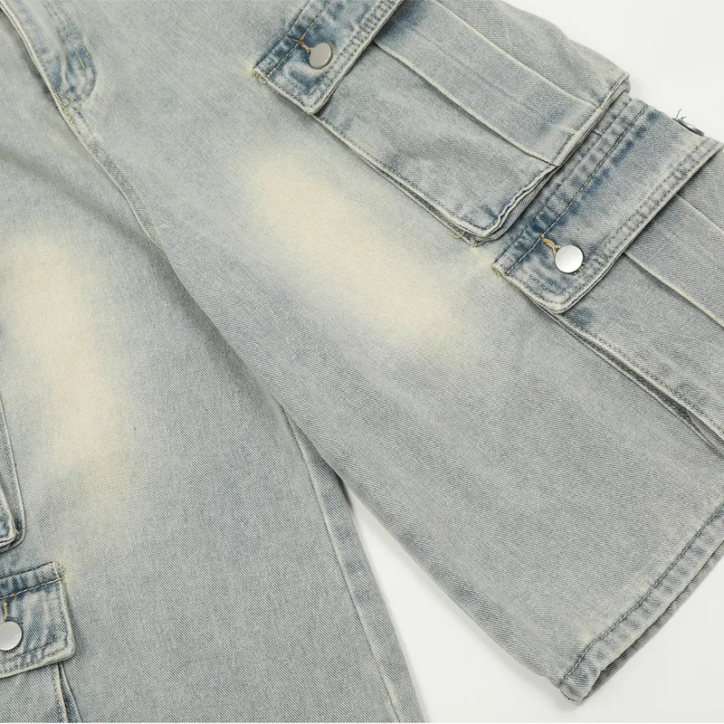 Wholesale Jiayiku Men's Summer Cropped Pants American Retro Washed Work Jeans Straight Vibe Wide-Leg Shorts