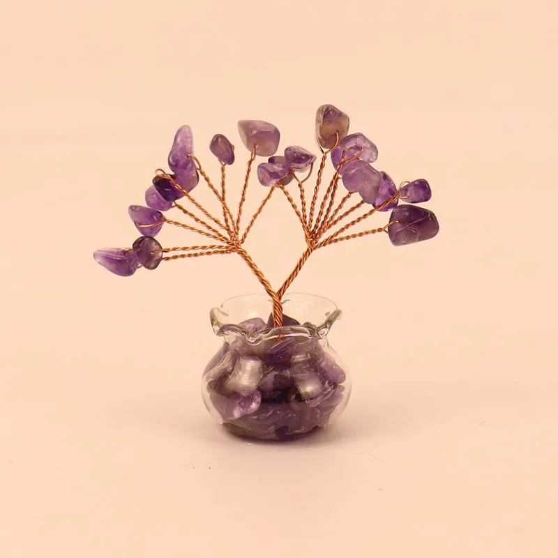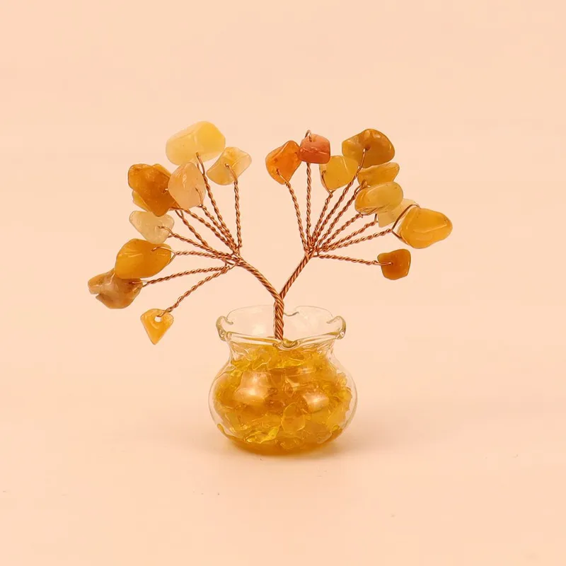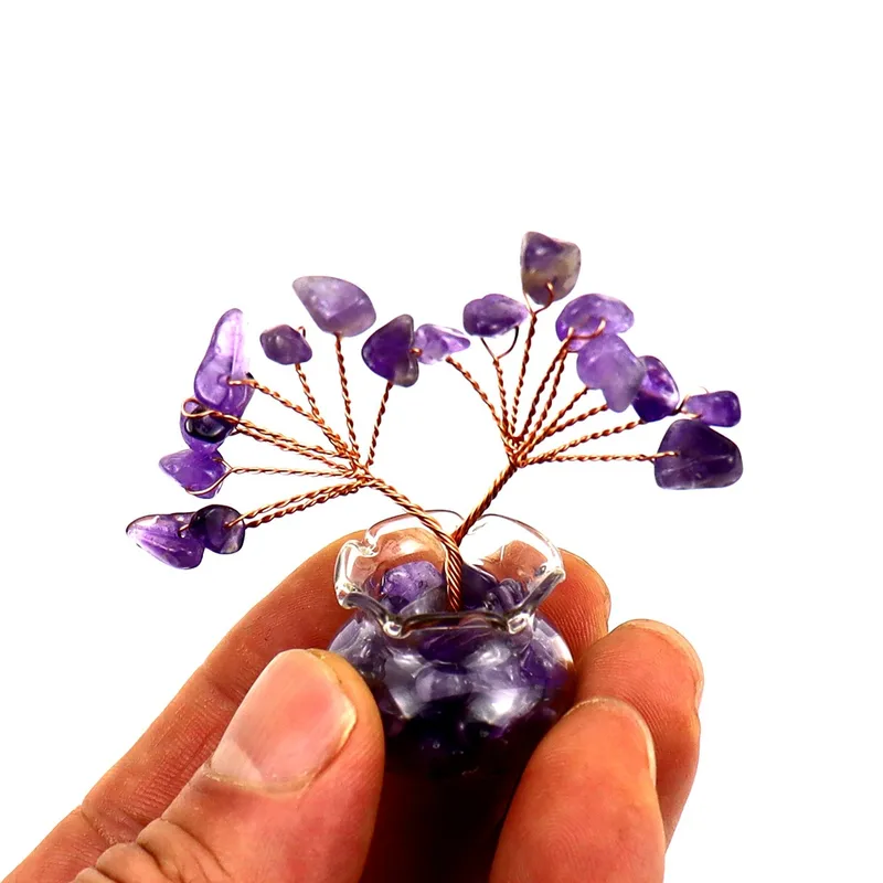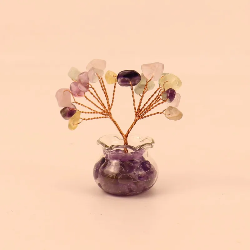 Natural Yellow Purple Pink Crystal Crystal Gravel Money Tree Hand-Woven Car Mini Crystal Tree Small Ornaments H21