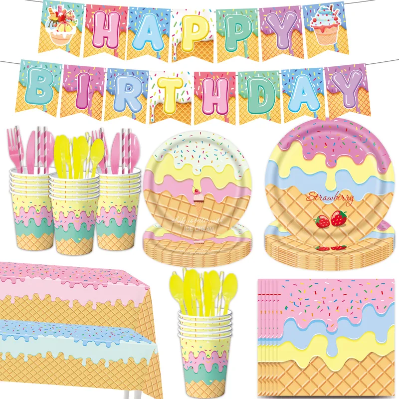Cute Modern Style Ice Cream Letter Plastic Paper Artificial Decorations