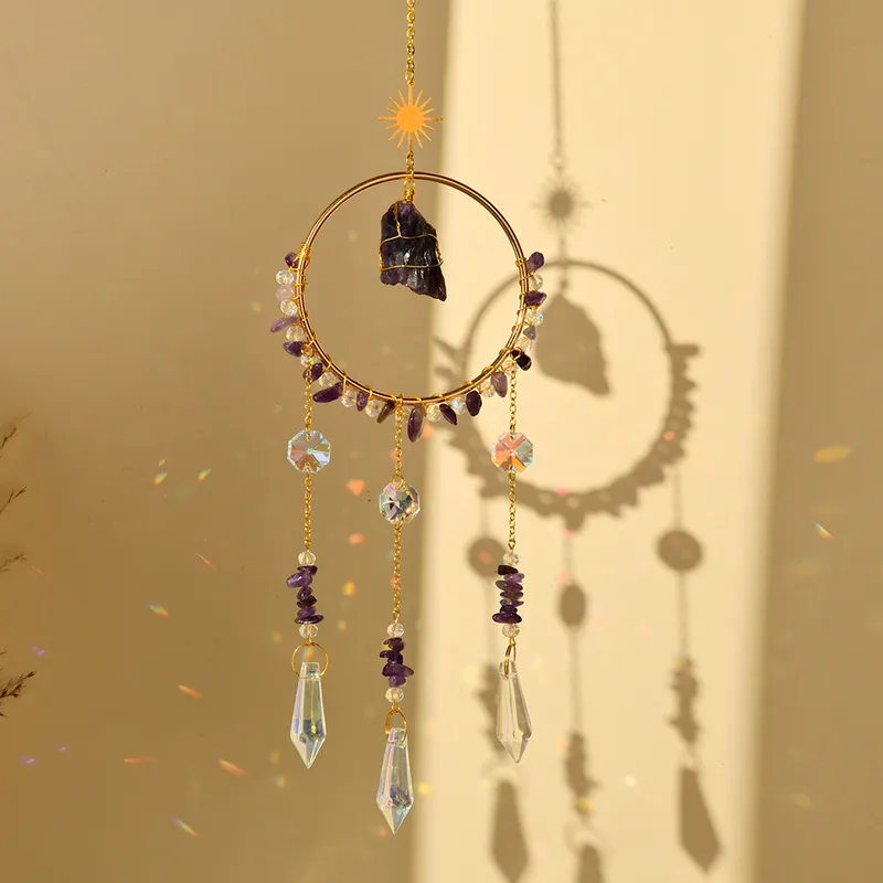 Wholesale Elegant Romantic Irregular Circle Crystal Iron Copper Wind Chime Wall Art