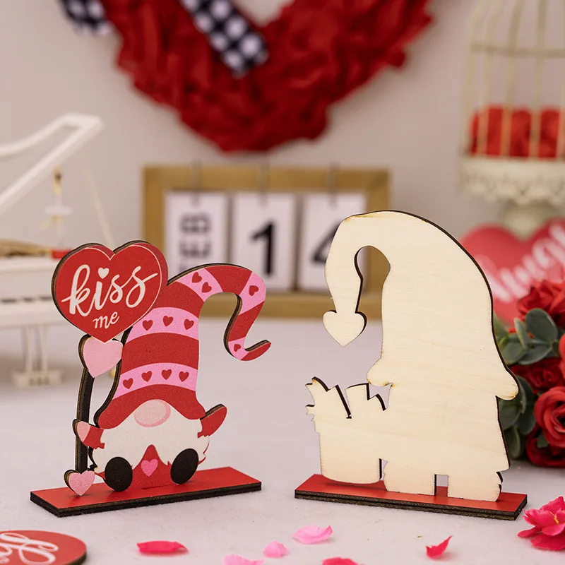Wholesale Valentine'S Day Cute Heart Shape Plywood Indoor Date Ornaments Rudolph Doll Decorations Table Decoration
