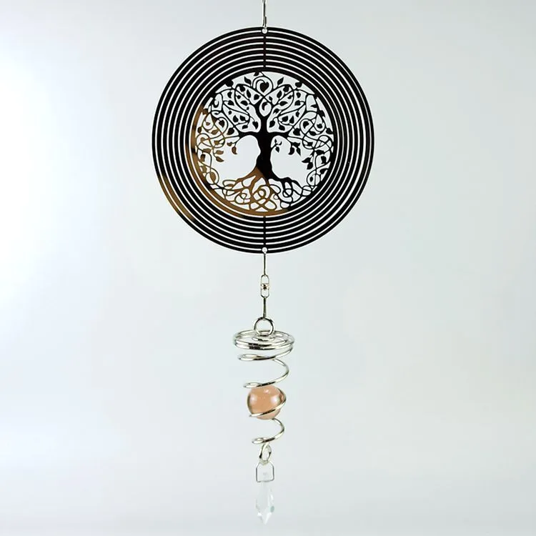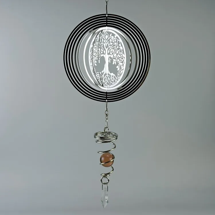 Wholesale 15CM stainless steel bearing rotating wind chimes life tree craft hanging ornaments