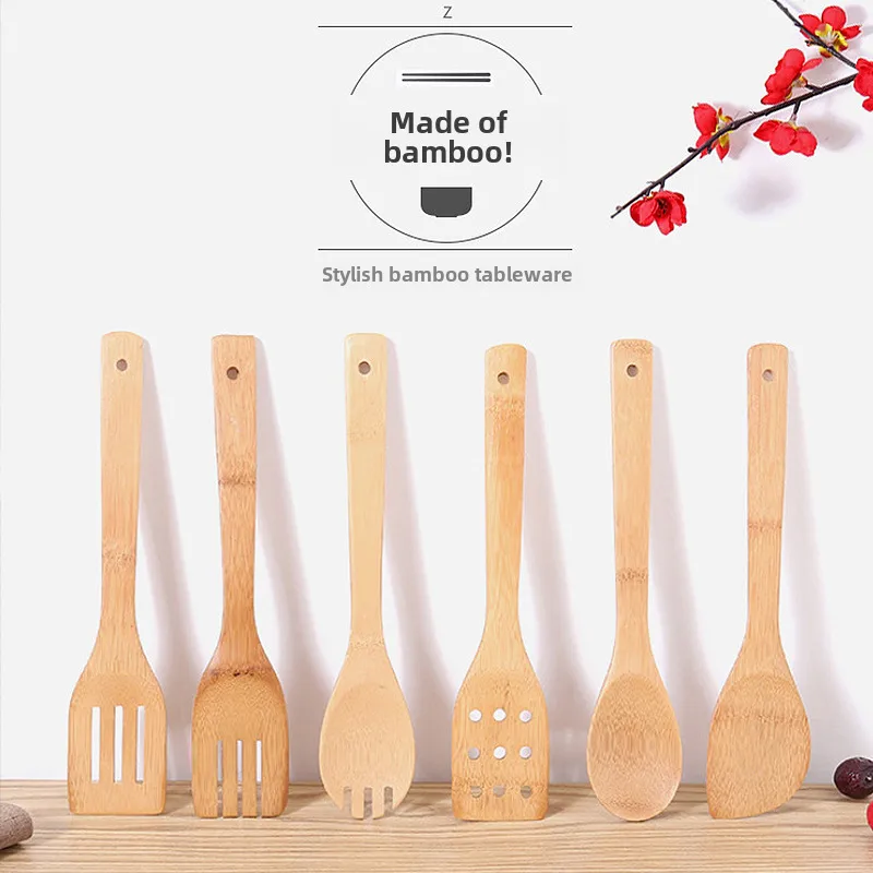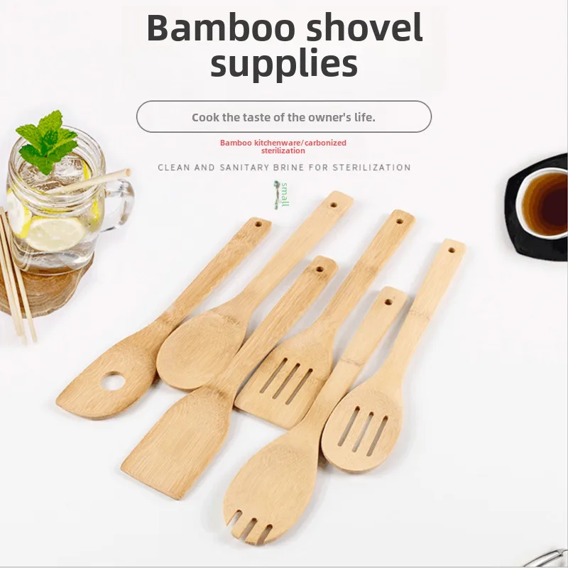 Wholesale Long handle bamboo spatula bamboo cooking kitchenware bamboo spoon kitchen frying spatula high temperature resistant bamboo colander non-stick spatula set