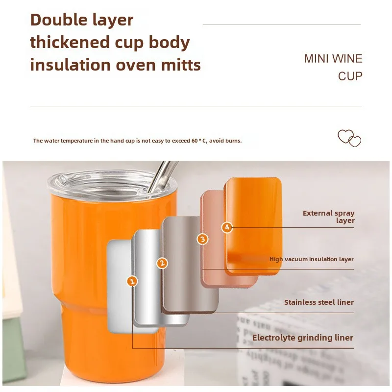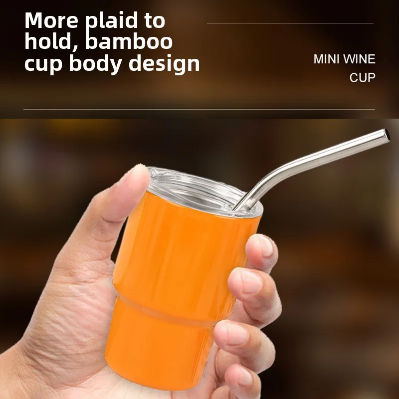 Household Stainless Steel Suction Tube Cup Single And Double Layer Anti-fall Small Wine Glass 3oz Cup Mini Sublimation Thermos Cup