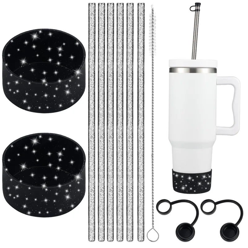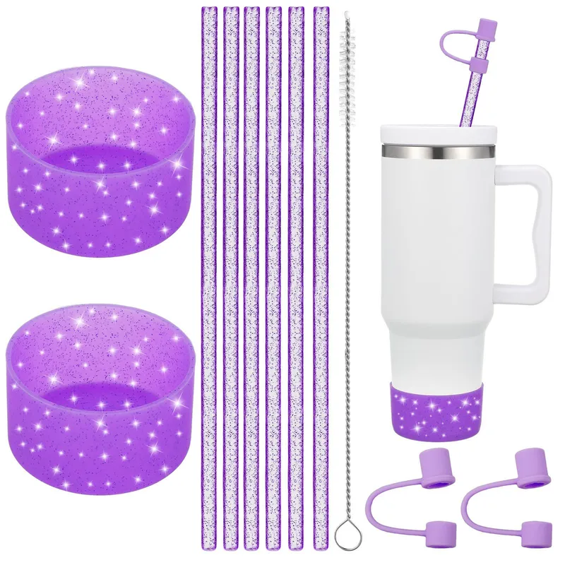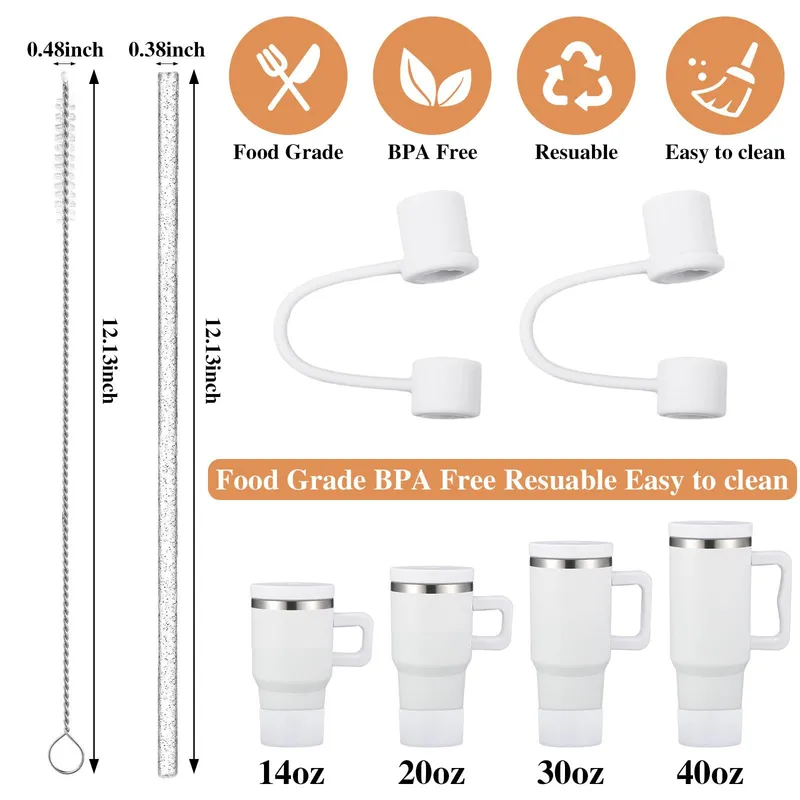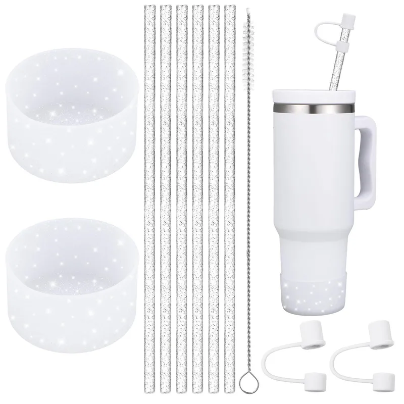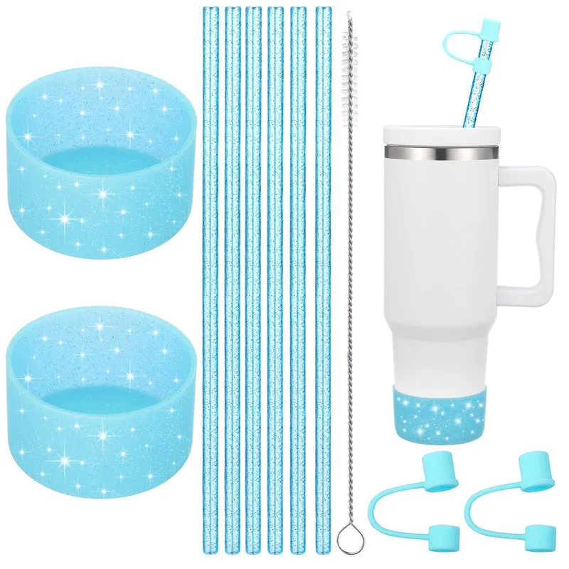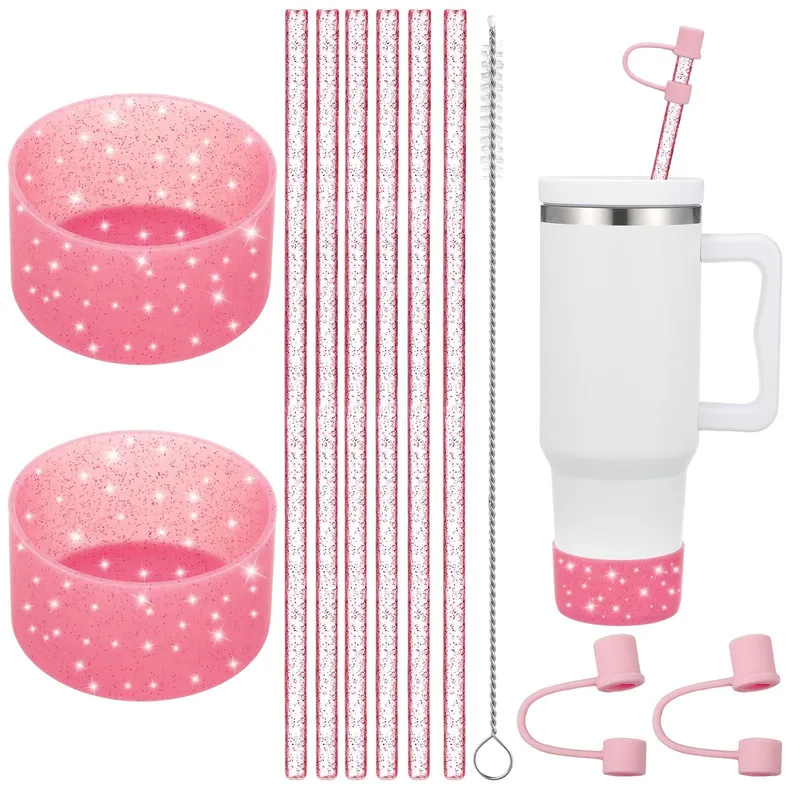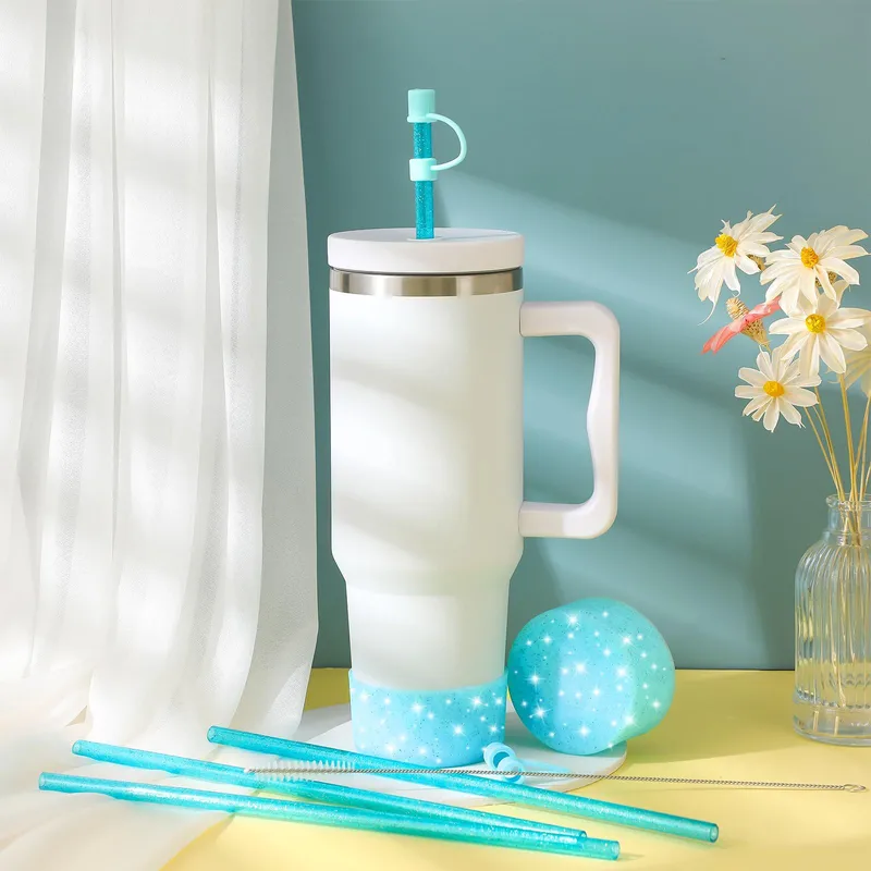 Cute Solid Color Silica Gel Straw Decorative Cap Cup Sleeves 1 Set