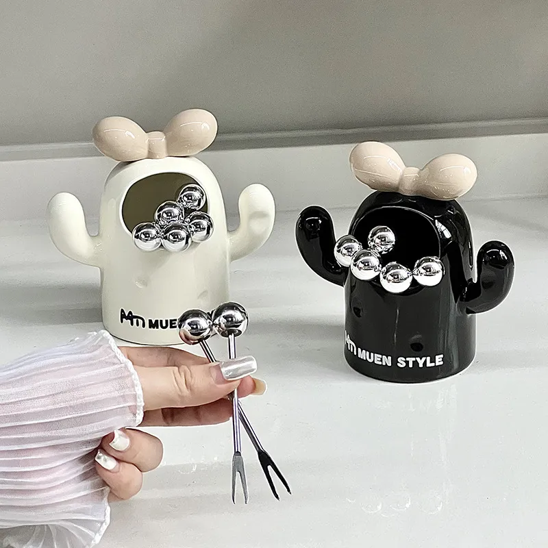 Wholesale Casual Cute Solid Color ceramics Fruit Fork 1 Set