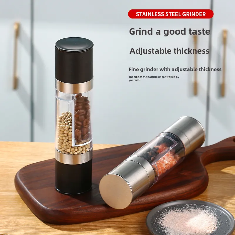 Stainless Steel Manual Double-headed Sea Salt Pepper Grinder Kitchen Special Adjustable Thickness Grinding Seasoning Bottle Manufacturers