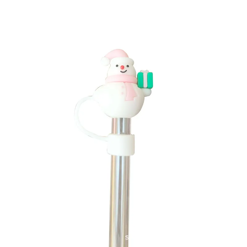 Christmas Cute Christmas Tree Santa Claus Snowman Silica Gel Straw Decorative Cap 1 Piece