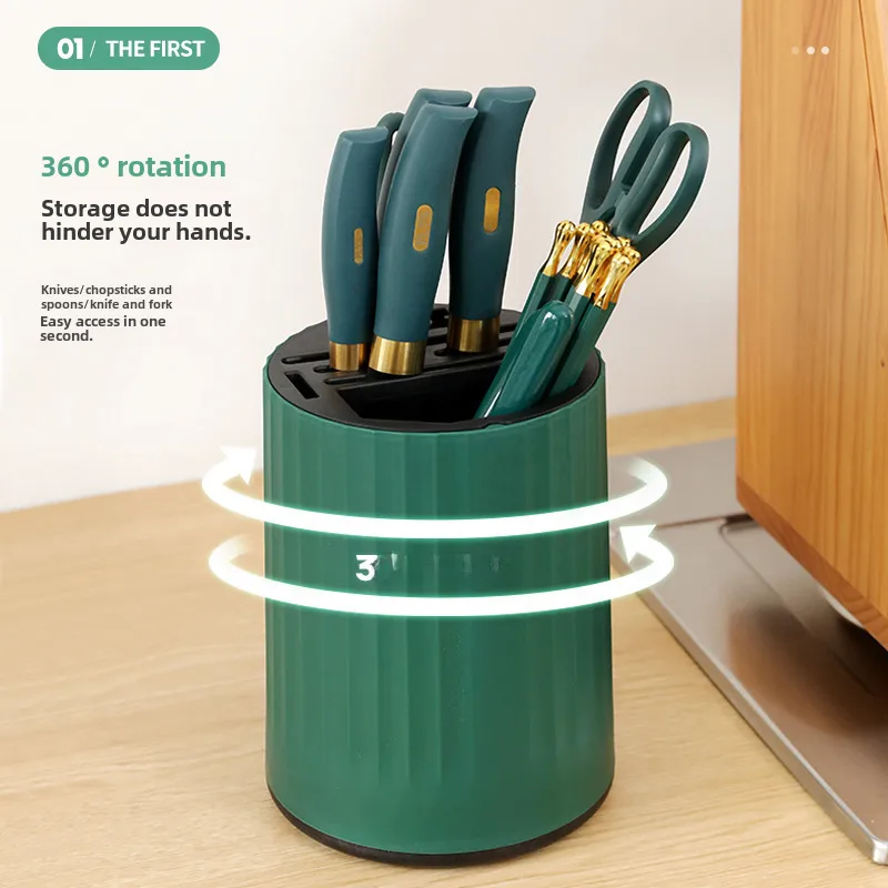 Hot Kitchen Rotating Knife Rack Storage Rack Multifunctional Household Chopsticks Kitchen Knife Tableware Shelf Storage Artifact