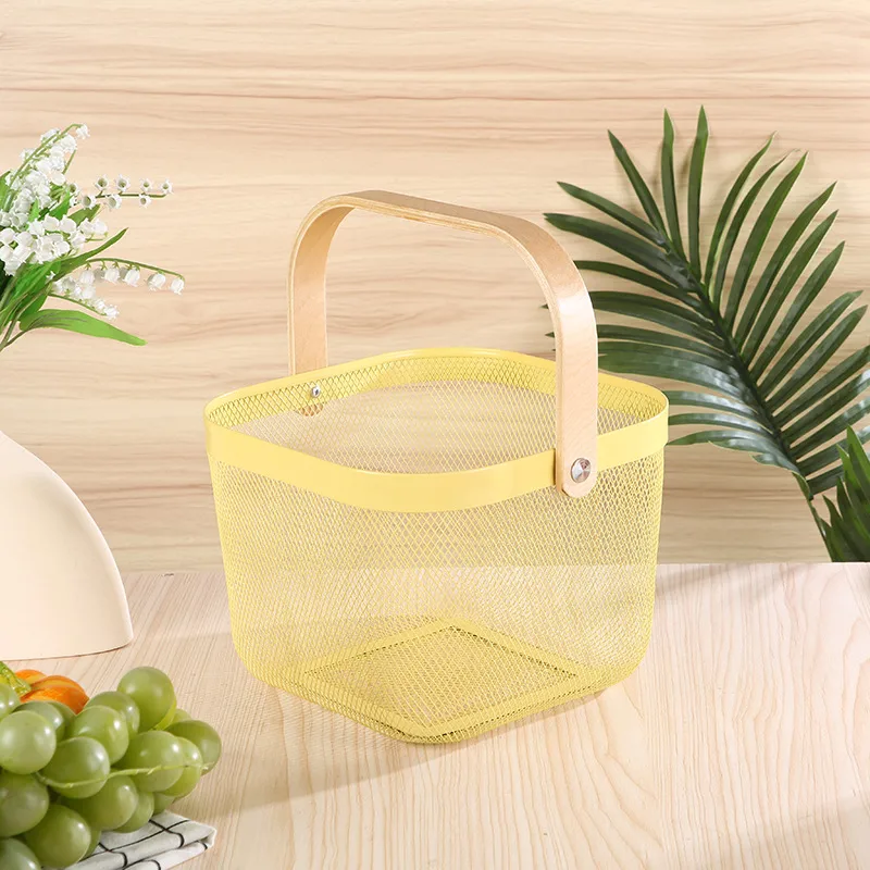 Wholesale Nordic Style Simple Style Color Block Wood Metal Storage Basket