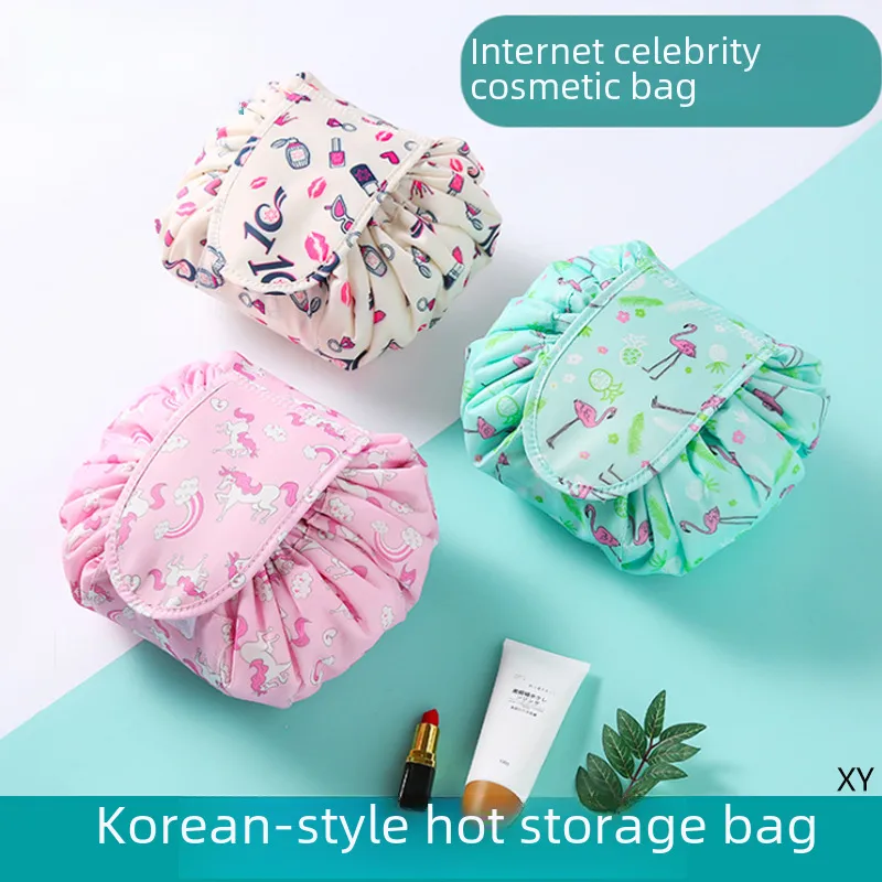 Wholesale Internet celebrity drawstring cosmetic bag style small size portable business trip Women Travel large capacity storage bag lazy storage bag