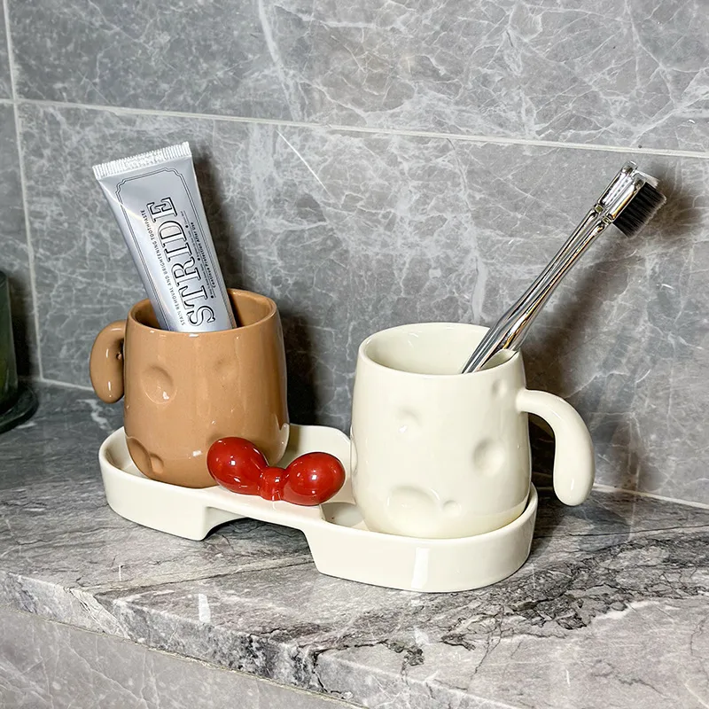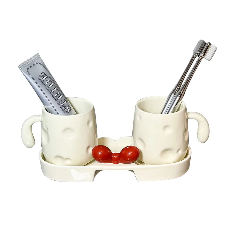 Wholesale Cute Simple Style Cheese Bow Knot ceramics toothbrush cup