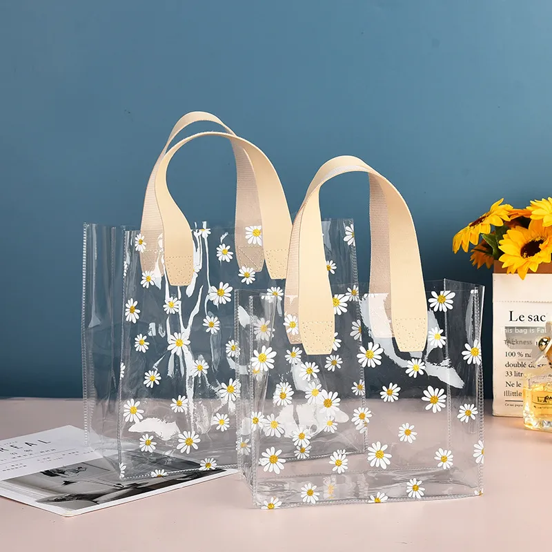 Fresh Style Transparent Candy Pvc Handbag Small Daisy Shopping Wedding Party Favour Bag Birthday Gift Bag