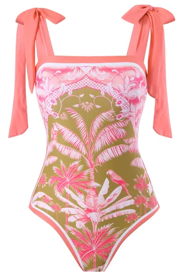 New sexy coconut print strappy one-piece swimsuit, skirt (one piece)
