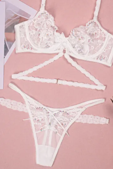 Wholesale New sexy flower embroidered sexy lingerie set lace thong bra three-piece set with underwire