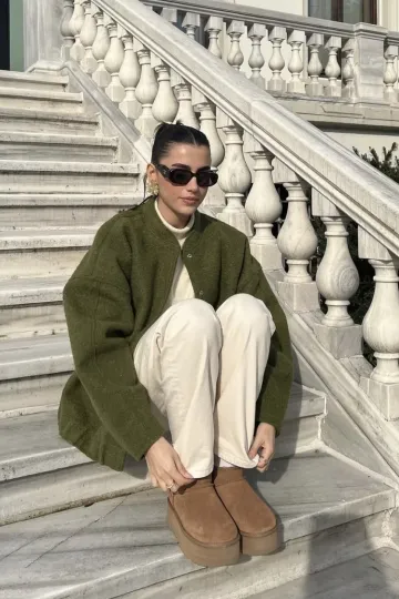 Loose casual jacket street Y2K stand collar concealed button jacket