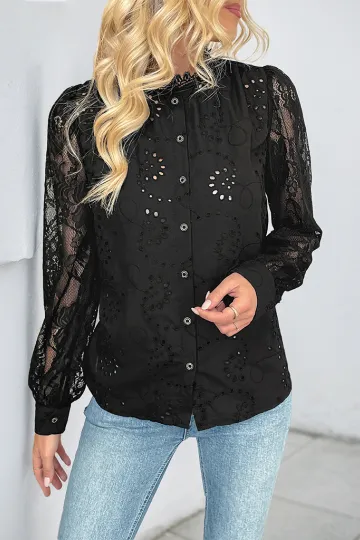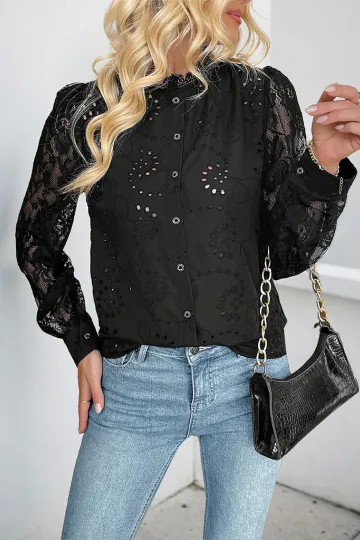 Wholesale New solid color lace patchwork shirt top