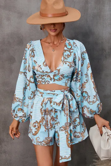 Wholesale New women's hollowed-out long-sleeved shorts V-neck jumpsuit