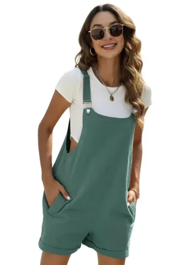 Women's Cotton and Linen Adjustable Casual Loose Overall Shorts