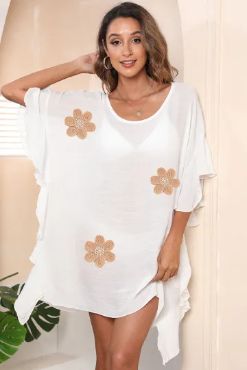 Wholesale Women's Ruffle Solid Color Simple Loose Beach Bikini Cover Up