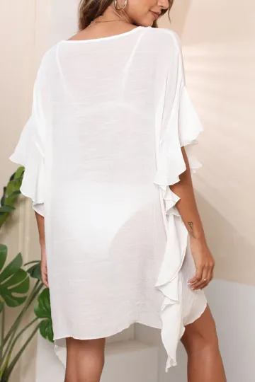 Women's Ruffle Solid Color Simple Loose Beach Bikini Cover Up