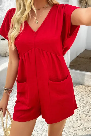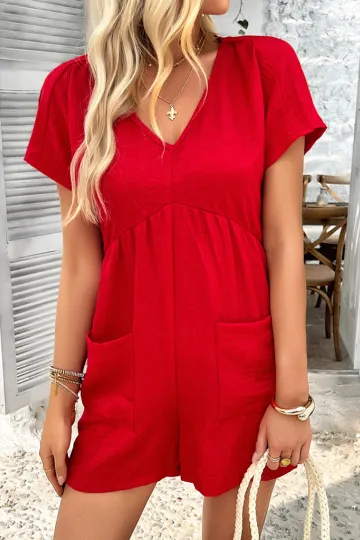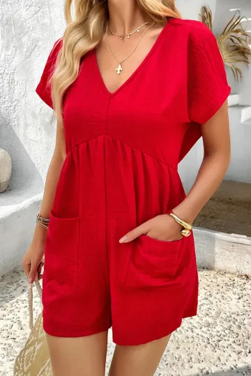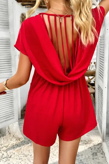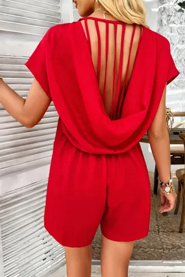 Bohemian casual solid color sexy hollow short-sleeved jumpsuit