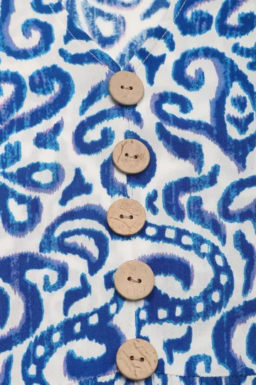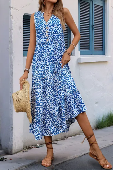 New V-neck button print sleeveless casual dress