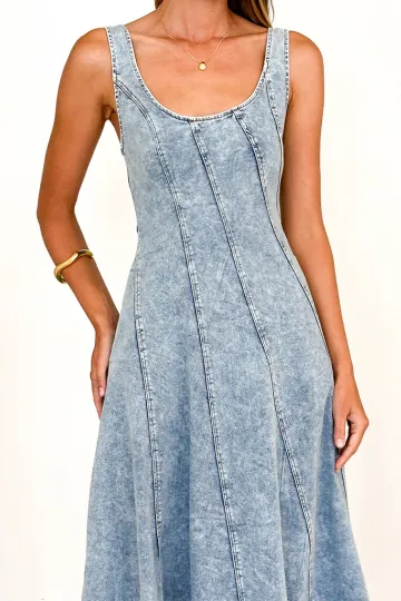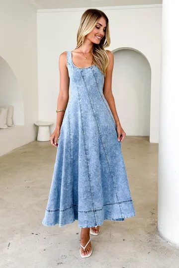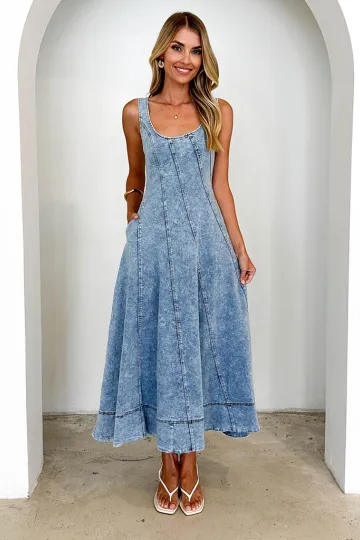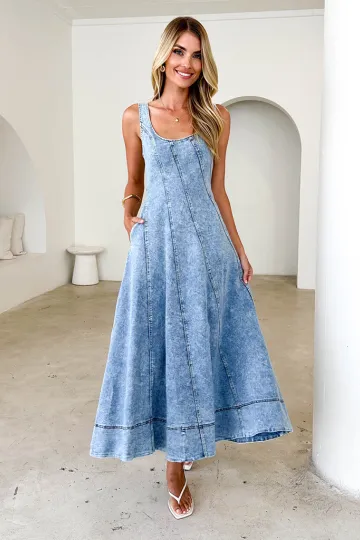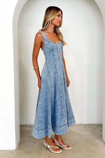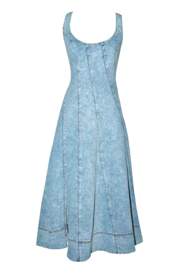 Wholesale Sleeveless Backless Midi Strap Long Denim Dress