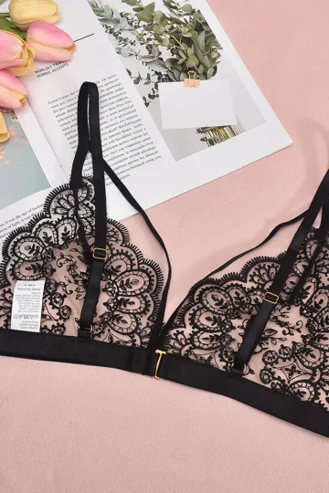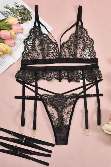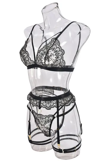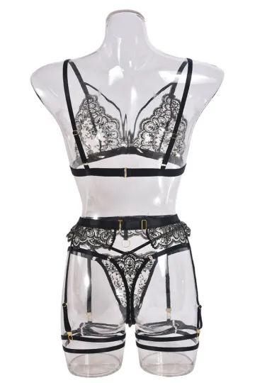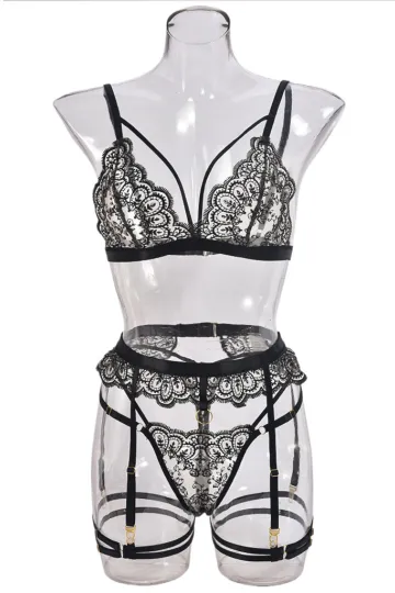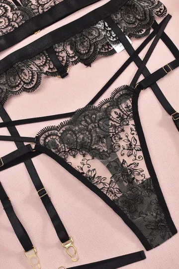Wholesale Embroidered lace sexy lingerie hollow chest design sexy four-piece set