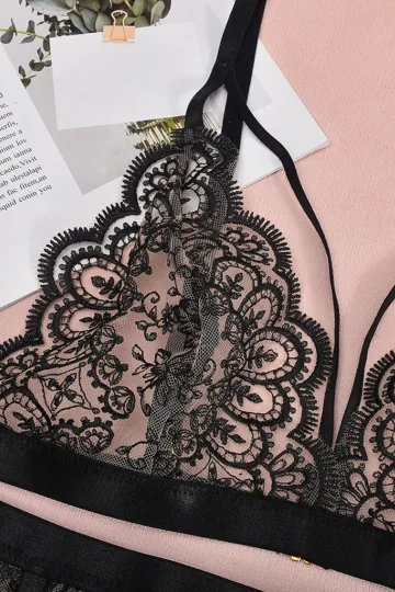 Embroidered lace sexy lingerie hollow chest design sexy four-piece set
